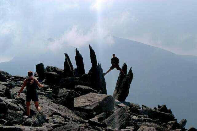 Nice that Neil is always in for a bit of stunt work. You can see him below, against the sun and Snowdon backdrop with Giselle on her way to take a picture.